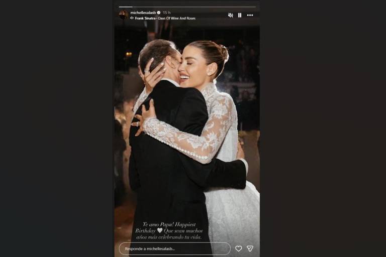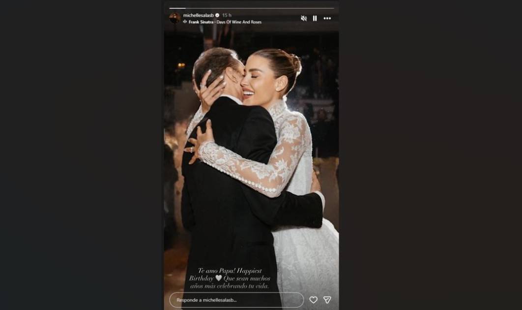 La imagen compartida por Michelle Salas es de su boda con Danilo Díaz Granados, que se llevó a cabo el 14 de octubre de 2023 en la finca Il Borro, en la Toscana, Italia. En la fotografía, se puede ver a Michelle abrazando a Luis Miguel abrazándose, con cercanía familiar.
