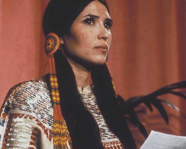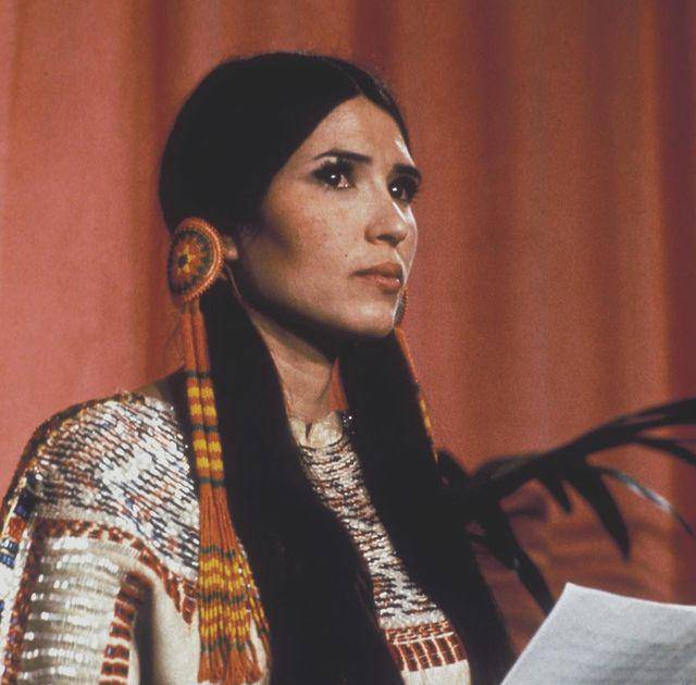 Subiendo al escenario con un vestido tradicional de piel de ciervo gamo para rechazar el Óscar -concedido por la interpretación de Brando de Vito Corleone en El Padrino- en su lugar, pronunció un discurso crítico sobre el mismo tema, llamando también la atención sobre una protesta en Wounded Knee, Dakota del Sur, contra el maltrato de los indios estadounidenses.