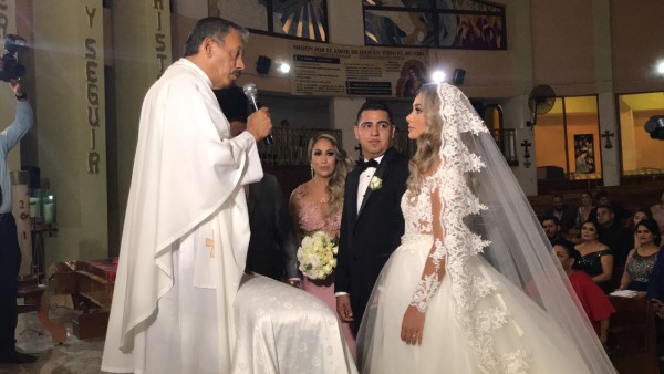 La ceremonia se celebró en la Iglesia de San Judas Tadeo, en Sábalo Country, donde recibieron la bendición del Sacerdote Juan Jorge Rosales, quien durante los votos matrimoniales preguntó a “El Chiras” la cantidad de hijos que querían, la respuesta fue ocho, desatando las risas entre los presentes.