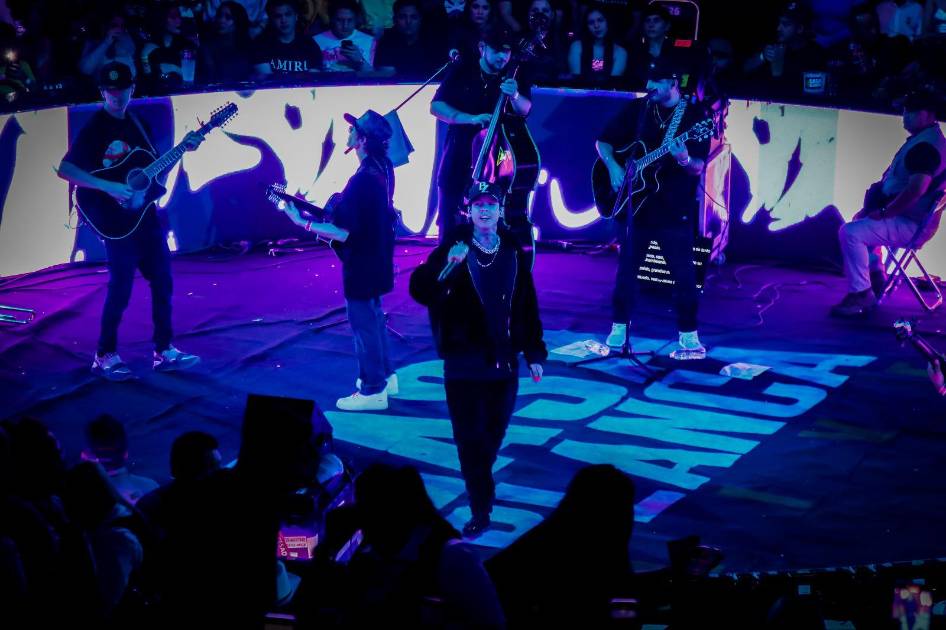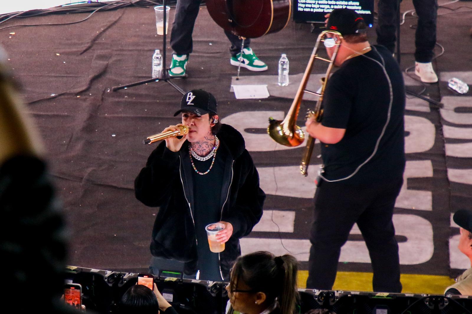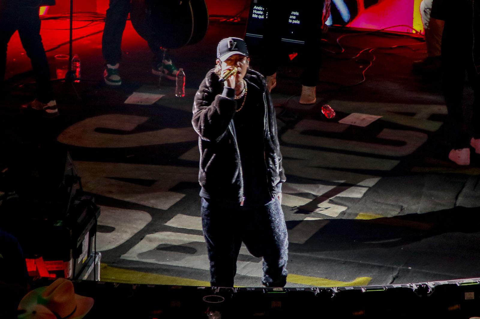 Vestido con prendas deportivas inspiradas en elementos urbanos, el artista mantuvo cautivo a su público por una hora y 45 minutos con piezas que combinan la esencia del regional mexicano con toques de música urbana.