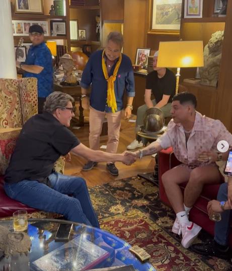 A través de unos videos difundidos en sus redes sociales, se le ve hablando con el empresario en el Hotel Pueblo Bonito, uno de los principales conglomerados que promueven el turismo en Sinaloa, del cual es dueño-fundador.