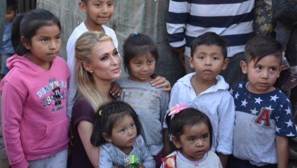 También se regaló galletas, dulces y agua para los niños que jugaban futbol y corrían por el terreno; Paris Hilton platicó con las familias con ayuda de su traductor.