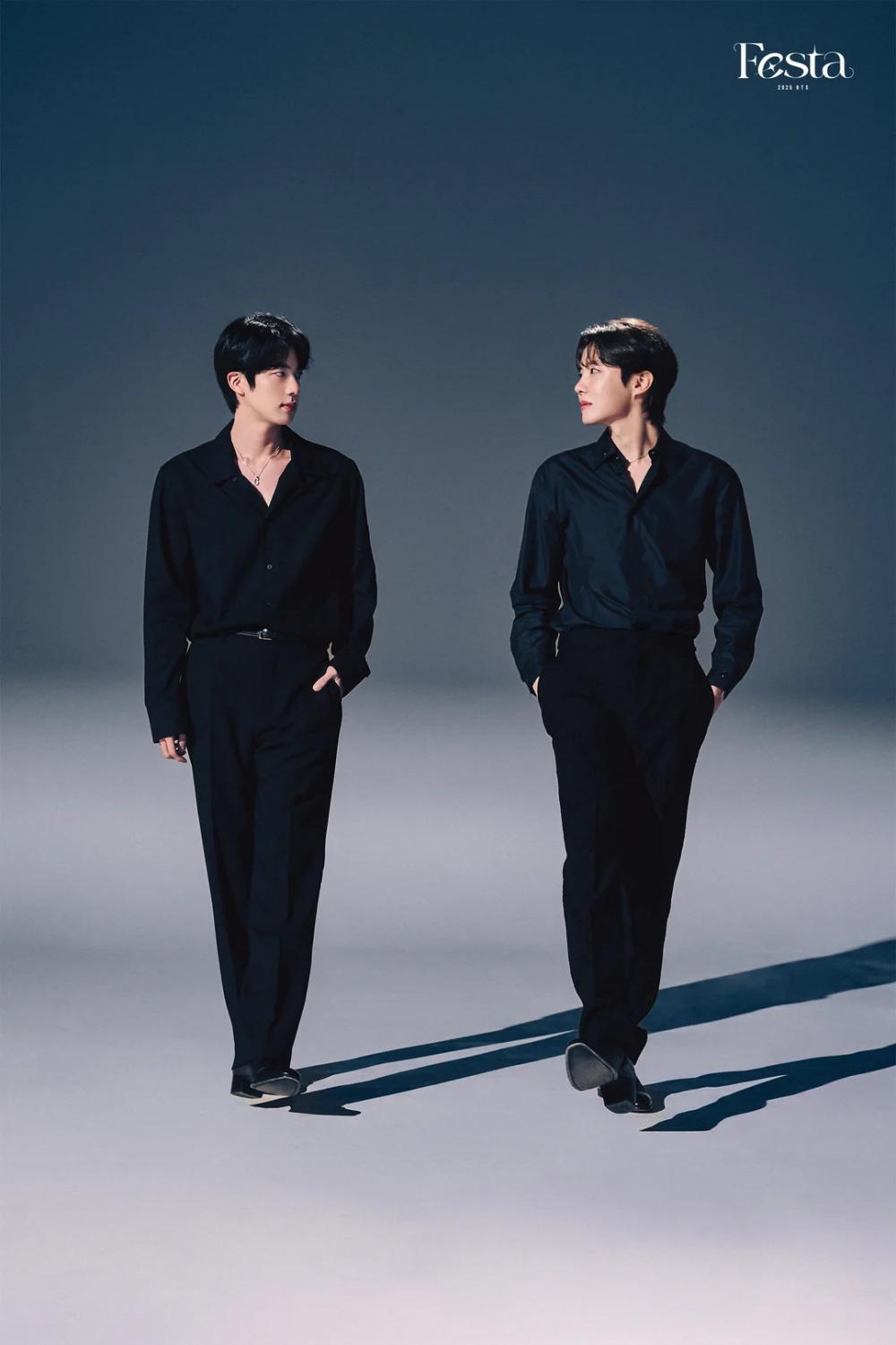 Las nuevas fotos muestran a Jin y J-Hope, ya liberados del ejército, luciendo elegantes en outfits semi-casuales oscuros. Su visual renovado confirma que están listos para el regreso grupal.
