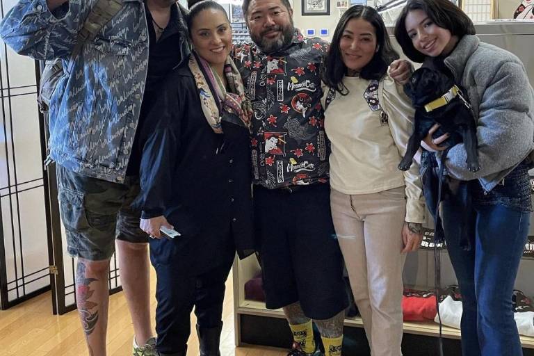 El tatuador le dio las gracias desde sus propias redes y compartió una foto de la familia Aguilar posando junto a él a su paso por el taller: “Acabamos esta pieza que comenzamos antes de la pandemia con mi hermano Pepe Aguilar, durante una rápida visita con motivo de la gira de Angela Aguilar. ¡Siempre es estupendo ver a tu maravillosa familia ¡Buen viaje y hasta la próxima! anunció feliz.