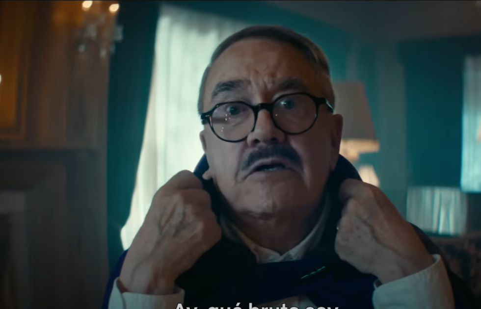 Casi al finalizar el video, se escucha la voz de Pedro Sola invitando a las personas ver la temporada 2, primera parte, de Merlina este 6 de agosto, pero confunde de forma intencional Netflix con Amazon, por lo que de inmediato se dice así mismo ¡Qué bruto soy!.