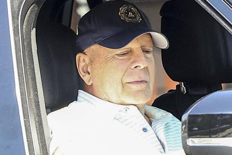 En las fotografías que se hicieron virales, se puede ver a Bruce Willis sentado en el asiento del pasajero de una camioneta utilizando una gorra negra y una camisa de botones con rayas grises.