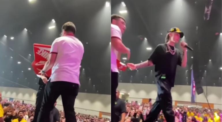En un momento del video se percibe cómo el fan abre la caja, pero Peso Pluma, al verlo, simplemente choca su mano con la de él y continúa su camino como si nada hubiera ocurrido. Incluso pareció que el resto del público tampoco comprendió la reacción del famoso, ya que hubo un silencio.