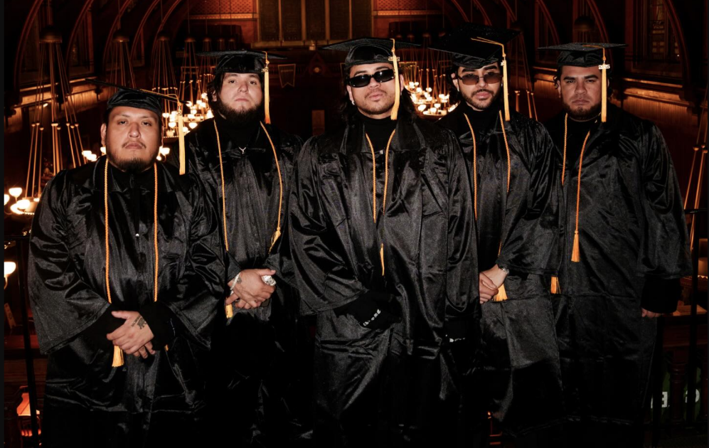 Los integrantes de Fuerza Regida posaron con una toga y birrete para celebrar el reconocimiento, luego de que la mañana de este miércoles se colocaron en el top 10 de los artistas globales de Spotify Wrapped 2025.