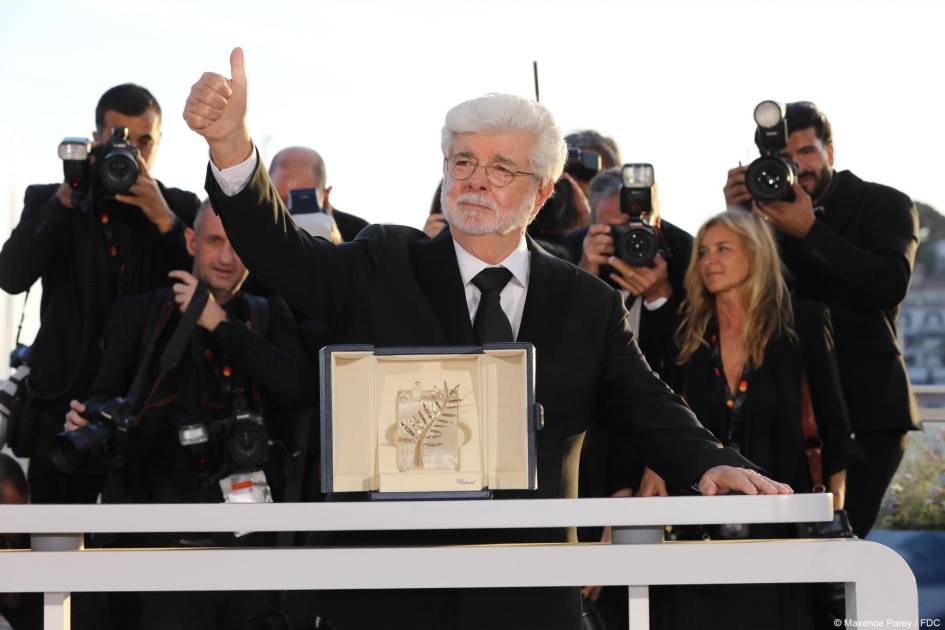 El legendario director de cine George Lucas regresó a Cannes y fue condecorado con la Palma de Honor.