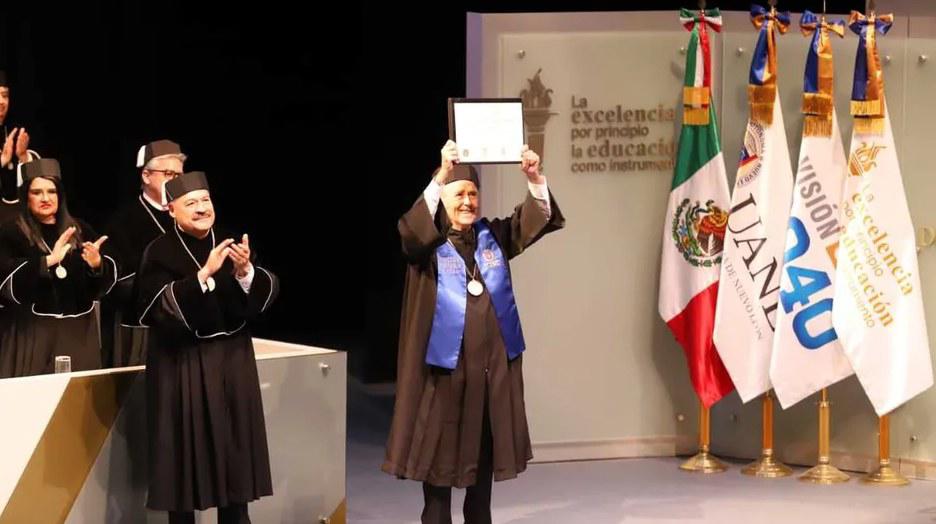 La ceremonia solemne, que estuvo encabezada por el rector de la UANL, Santos Guzmán López, se realizó en las instalaciones del Teatro Universitario de la Unidad Mederos.