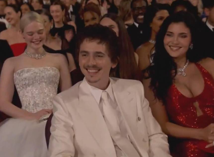 La cámara enfocó entonces a Chalamet, quien aparecía sonriendo junto a su novia, Kylie Jenner.