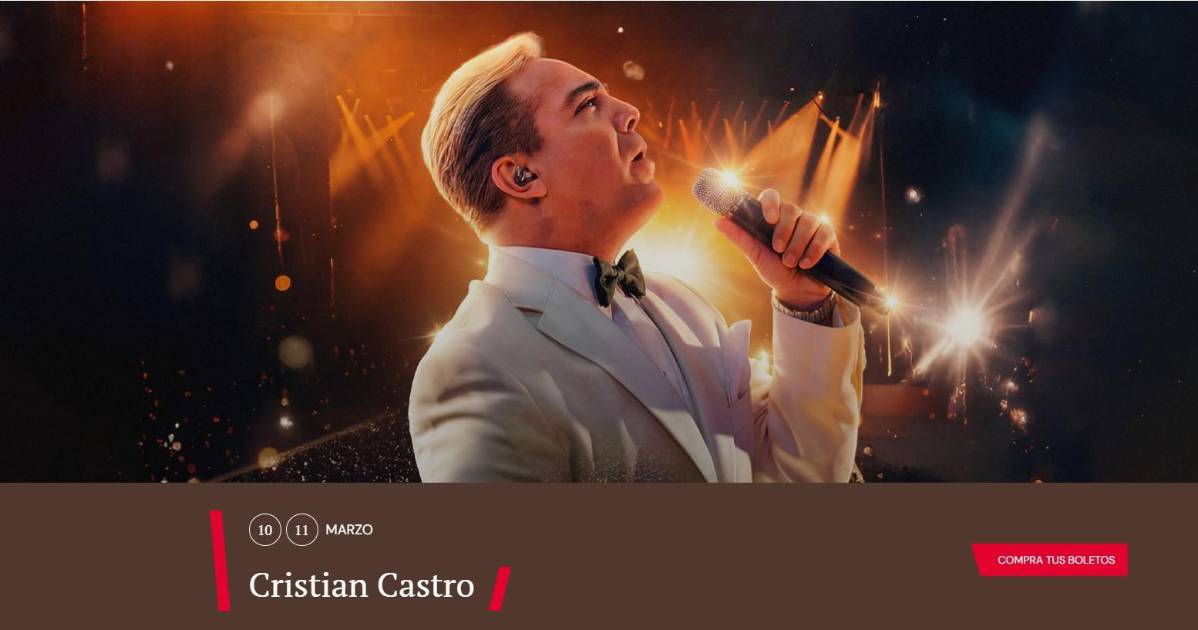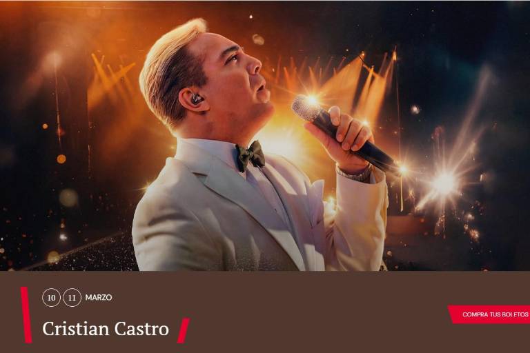 En la página web del Auditorio Nacional se publica que los boletos para los conciertos de Cristian Castro comienzan en 3 mil pesos.