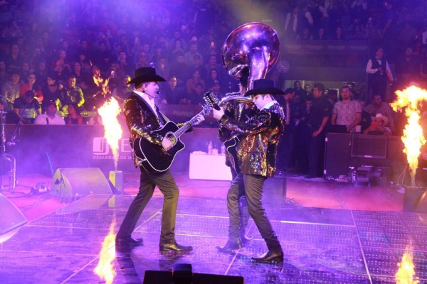 Previo a la presentación de Los Plebes del Rancho, el dueto de los Hermanos Vega Jr se presentó en el renovado óvalo del palenque, donde cautivaron a los asistentes mostrándoles muchas muestras de cariño, entregándose en cada una de sus interpretaciones.
