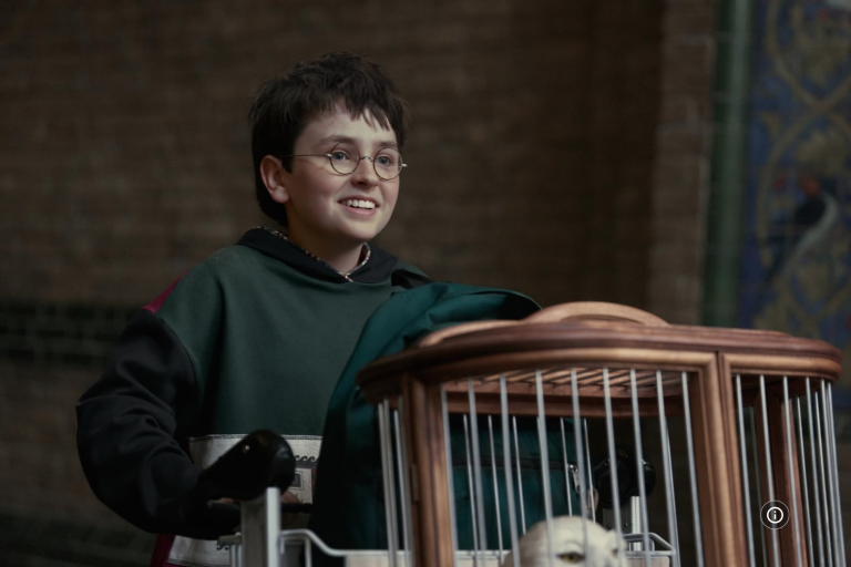 El tráiler avanza rápido hacia momentos icónicos como Hagrid explicando el pasado de sus padres, el primer encuentro en el Expreso de Hogwarts, donde un joven Ron Weasley lanza la pregunta que todos recordamos: “¿Realmente eres Harry Potter?”. El primer vistazo al imponente castillo y al sombrero seleccionador.
