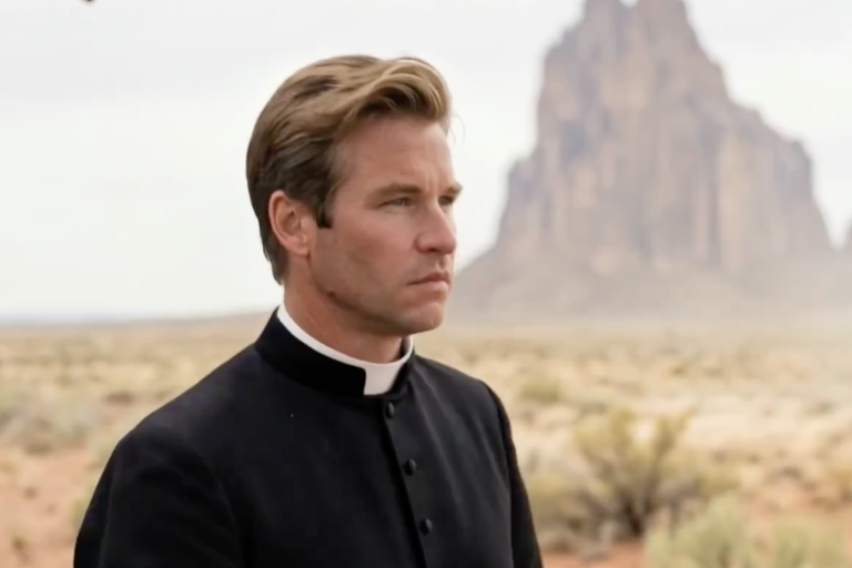 Pero debido a sus problemas de salud, Kilmer, quien padecía cáncer, desistió del rol. Tras una pausa por la pandemia, los hermanos vieron en el avance de la tecnología una oportunidad para traer a Kilmer de vuelta en la piel del padre católico Fintan, quien “sufría de tuberculosis, y que, como muchos, fue al suroeste (de Estados Unidos) por el clima seco, y abrió varias misiones”, comentó Coerte.
