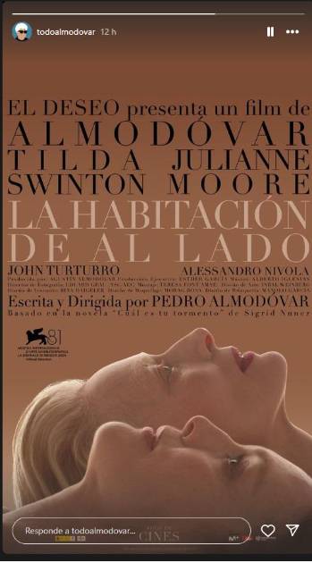 Revelan póster de ‘La habitación de al lado’, nueva cinta de Pedro Almodóvar
