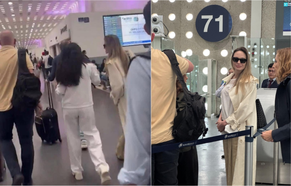 Un video, compartido en la cuenta de TikTok @jerotrevino, dejó ver el momento en el que las actrices arribaron al aeropuerto de la Ciudad de México. Angelina Jolie estaba vestida con un abrigo largo color beige y lentes de sol. Mientras que Salma Hayek utilizó un conjunto blanco.