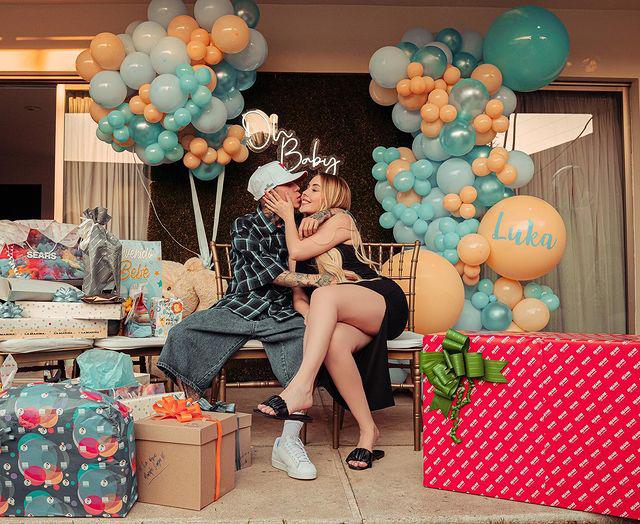 En la foto se aprecia a Ángel Quezada, mejor conocido como Santa Fe Klan, a lado de su esposa Maya Nazor, rodeados de múltiples regalos con el nombre “Luka”.