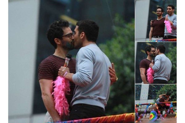 MÉXICO (UNIV)._ Los actores Alfonso Herrera y Miguel Ángel Silvestre, en sus papeles de Hernando y Lito, causaron revuelo por compartir tremendo beso apasionado en medio de desfile gay.
