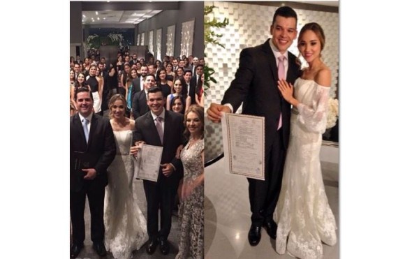 "Es un sueño hecho realidad creo que para todo ser humano encontrar a la mujer de tu vida y hoy aquí les presumimos el acta -de matrimonio", manifestó Leandro, según la red social de sus fans.