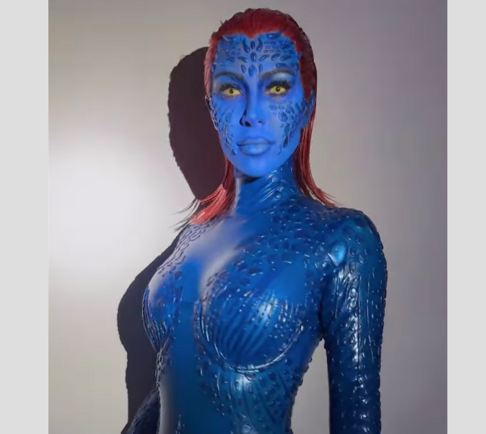 Kim Kardashian lució irreconocible cuando se transformó en Mystique de X-Men para Halloween. La socialité de 42 años lució idéntica al mutante de escamas azules, que fue interpretado por Rebecca Romijn en las películas originales y Jennifer Lawrence en las precuelas.
