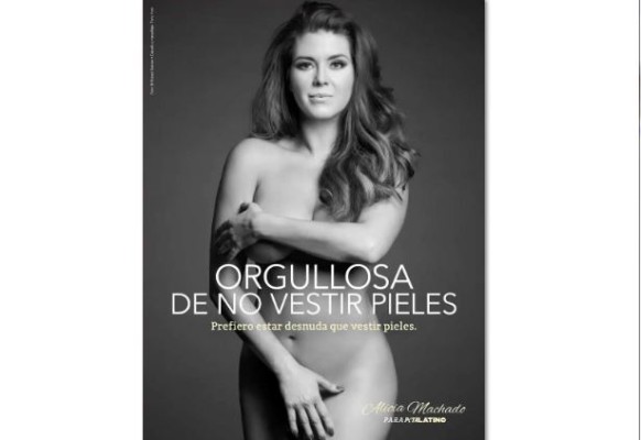 MIAMI._La ex Miss Universo venezolana Alicia Machado presume de curvas y posa sin ropa en una campaña contra el uso de pieles de animales del grupo ambientalista People for Ethical Treatment of Animals (PETA) con un mensaje bien rotundo: “prefiero estar desnuda que vestir pieles”.