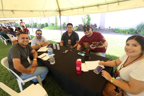 “Este es el taller de composición más grande de México, donde el primer día, que es éste, consiste en que los participantes que vienen de todo el País escriban canciones con muchos amigos nuestros, que ya les han grabado bandas como Los Recoditos, La Arrolladora, Pesado, y muchas más. Son más de 30 autores consolidados, cada uno está en una mesa con su equipo y están sacando canciones. La finalidad es esa, en las ediciones que han pasado se han sacado alrededor de 50 canciones que han grabado grandes agrupaciones y cantantes”, dijo Salvador Aponte, en entrevista para SAPS Grupero.