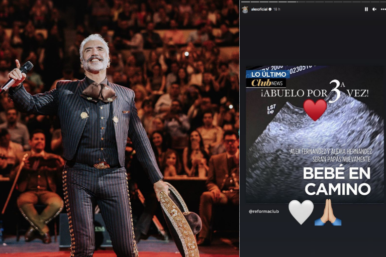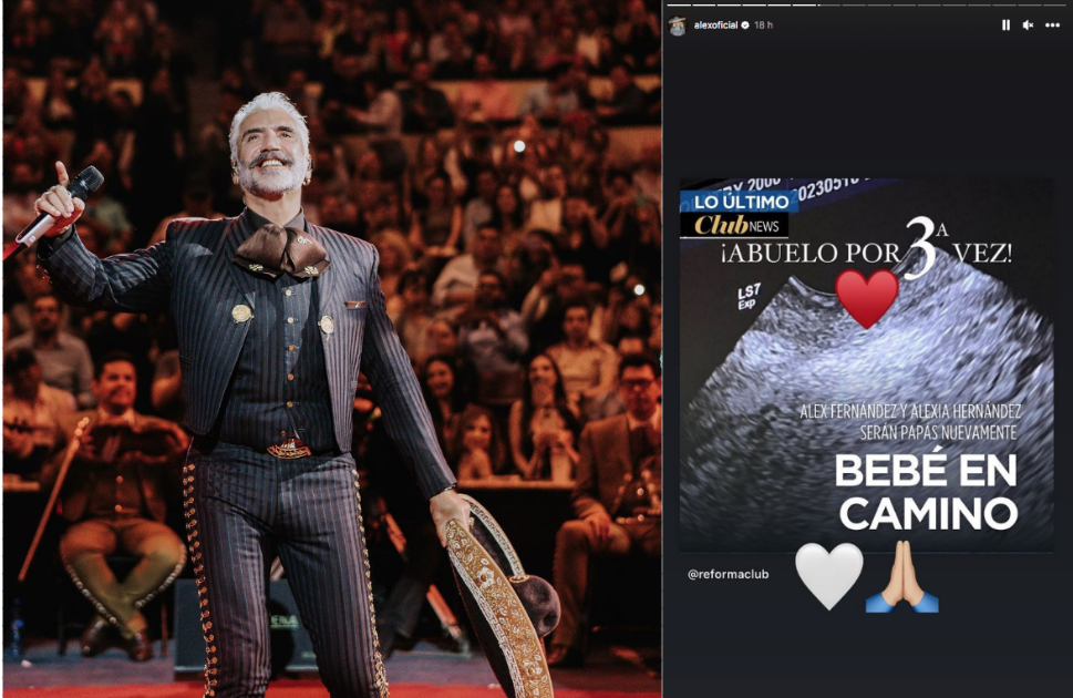 Alejandro Fernandez, en la Plaza de Toros México interpretó algunas canciones con su hijo Alex Fernandez, quién le dio la grata sorpresa de que será abuelo de nueva cuenta,con ultrasonido en la mano El Potrillo reaccionó emocionado .