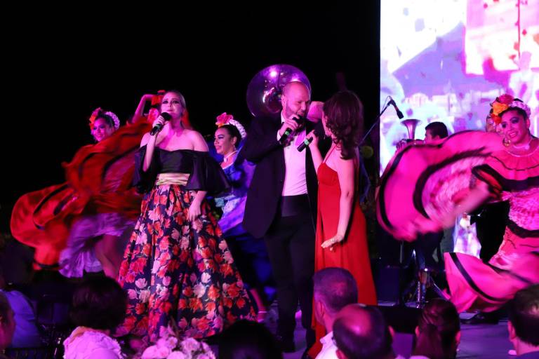 Al terminar la cena, que se compuso de cuatro tiempos, llegó la algarabía sinaloense al escenario al son de la Banda Brissa Mazatecla, quienes a las primeras notas del Manicero prendieron la fiesta, ayudados por los integrantes del Ballet Folclórico FACEAM, del maestro Ramón Escutia, quienes también pusieron las coreografías de los temas La múcura y El quelite.