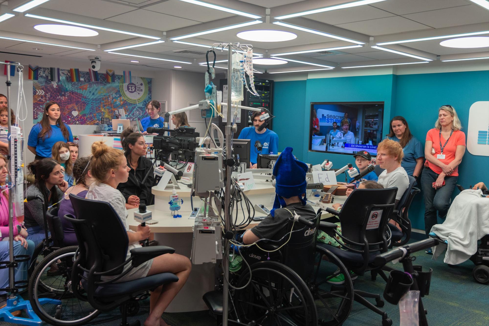 De acuerdo con informes de NBC 10 Boston, Sheeran visitó el Boston Children’s Hospital, donde se reunió y tomó fotografías con más de 100 pacientes y sus familias. Durante su visita, el artista interpretó en vivo los temas Perfect y Castle on the Hill de su álbum ÷ (Divide) en el Seacrest Studio del hospital.