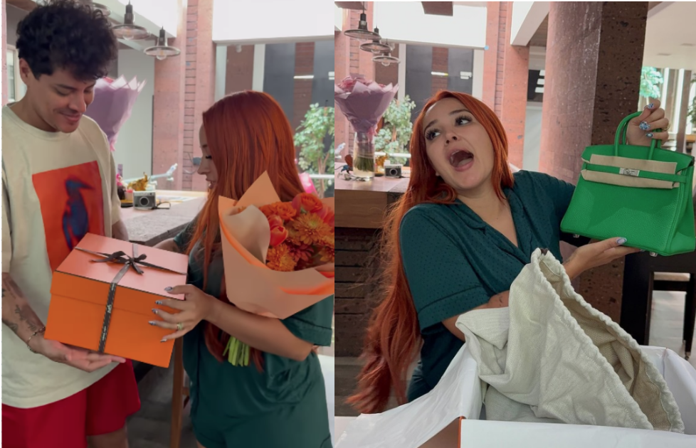 “Feliz cumpleaños mi reina. Primer regalo de muchos que te tengo para este día tan especial”, escribió el cantante. El bolso Hermès Birkin 30 Togo Vert Yucca con herrajes de paladio tiene un costo aproximado de acuerdo con información obtenida en internet como el que Eduin Caz le regaló a su esposa puede costar poco más de un millón de pesos.