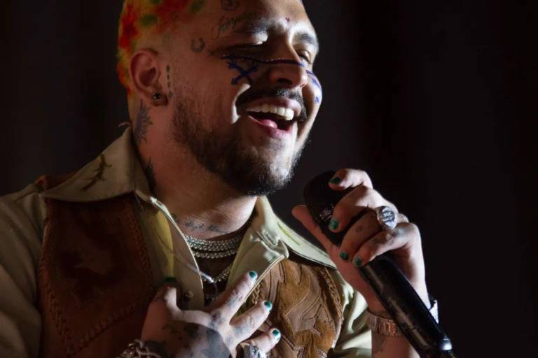Cabello corto y totalmente rubio, con flores o cruces de colores pintadas, es la nueva imagen del artista sonorense.