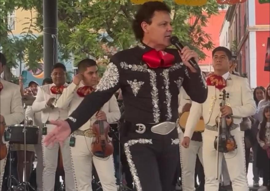 A través de sus redes sociales, el cantante de 54 años anunció que tenía algo preparado para sus fans en dicho sitio. No dio más detalles, pero por la tarde acudió, vestido de charro, para dar una emotiva presentación en el quiosco de la popular plaza.