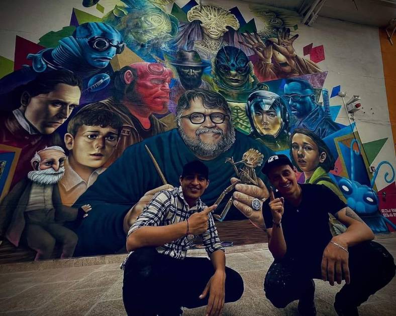 Jóvenes sorprendieron el cineasta mexicano Guillermo del Toro, a quien dedicaron un mural, así como a sus películas, plasmando algunos de los personajes que ha llevado a la gran pantalla y plataformas de streaming.