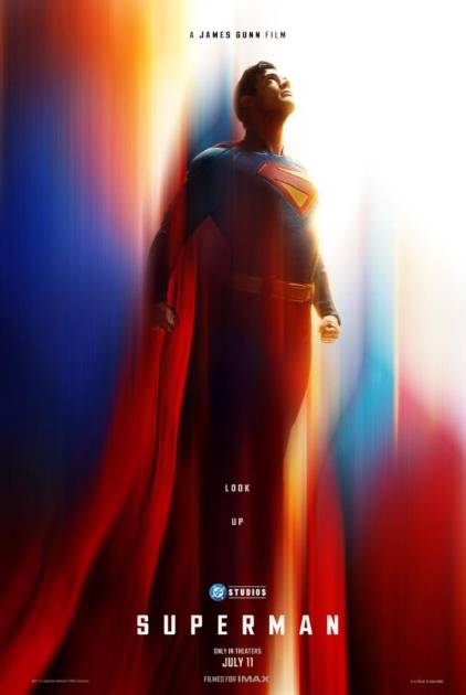 La productora Warner Bros presentó el primer póster de la cinta a través de sus redes sociales, en el que se ve al actor David Corenswet (quien interpretará a Clark Kent/Superman) con el tradicional traje azul y la capa roja elevándose y con la mirada hacia arriba.