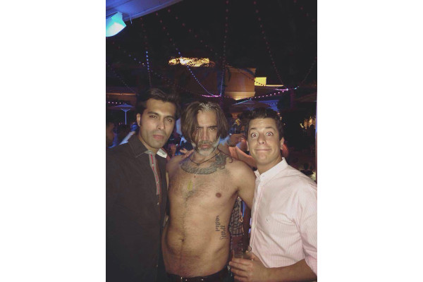 En una publicación de la revista LGBT, se observa a “El Potrillo” en una fiesta con el torso descubierto, en medio de dos hombres y con el cabello suelto.