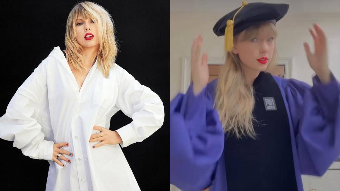 Con toga y birrete, Taylor Swift lució a través de un video de preparación del discurso de graduación de la Universidad de Nueva York.