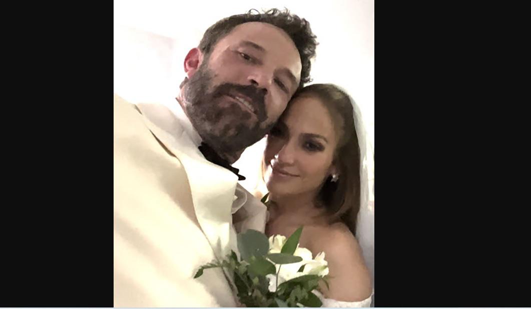 La actriz se usó un vestido de encaje de Zuhair Murad con hombros descubiertos, corsé y tipo sirena y un velo. Affleck, de 49 años, se puso un esmoquin blanco que no había comprado especialmente para la ocasión.