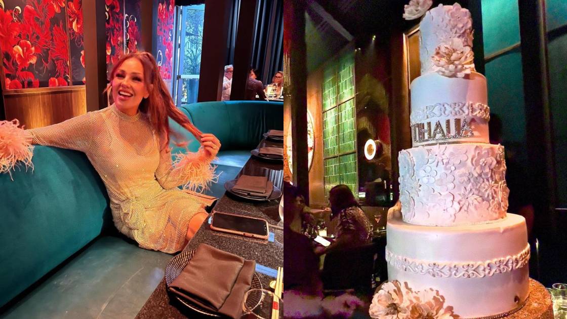 Thalía celebra su cumpleaños 51 con un gran pastel de cuatro pisos