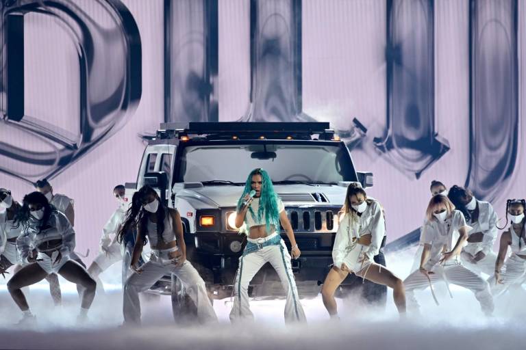 Las presentaciones no pararon Doja Cat encendió el escenario durante su presentación de tema "Kiss me more" estuvo acompañado SZA.