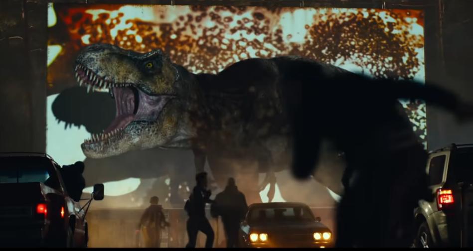 Después, la pieza vuelve al presente donde en un autocine en el que se proyectan dos grandes clásicos vintage como son American Graffiti y Flash Gordon, irrumpe una colosal T-Rex provocando el caos y desatando el pánico entre los asistentes. Y es que, tras los eventos relatados en Jurassic World: El Reino Caído, los dinosaurios vuelven a campar a sus anchas por el continente y, tal y como demuestra este clip, detenerlos no es nada sencillo.