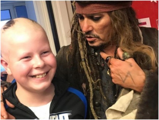 "Vestido de Jack Sparrow, Johnny Depp visita a niños con cáncer"