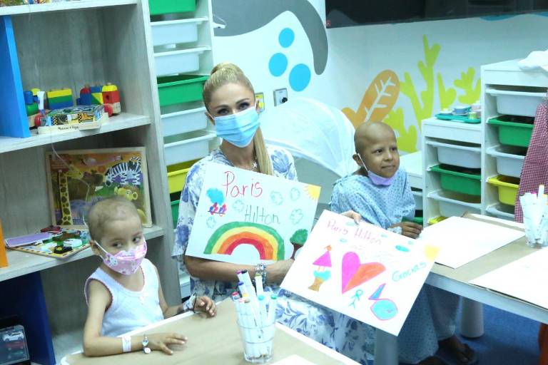 Paris recorrió algunos cuartos recién inaugurados, saludó a los pequeños e ingresó a la ludoteca, donde pintó algunos dibujos y recibió otros para llevarse de recuerdo, señaló publimetro.com