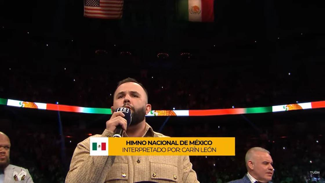 El cantante sonorense, Carín León interpretó el Himno Nacional Mexicano en el inicio de la pelea entre el Canelo Álvarez contra Dmitry Bivol.
