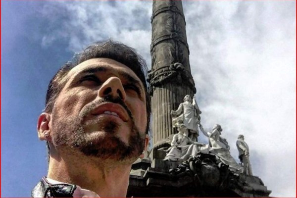 Viste un pantalón negro a cuadros, una camisa morada con rayas negras y una chamarra de cuero negro, una arracada en la oreja izquierda y el pelo perfectamente peinado. Sentado en un sofá en la casa de su sala, rodeado de libros de arte, fotografía y arquitectura, habla fuerte, seguro y casi sin mover las manos: