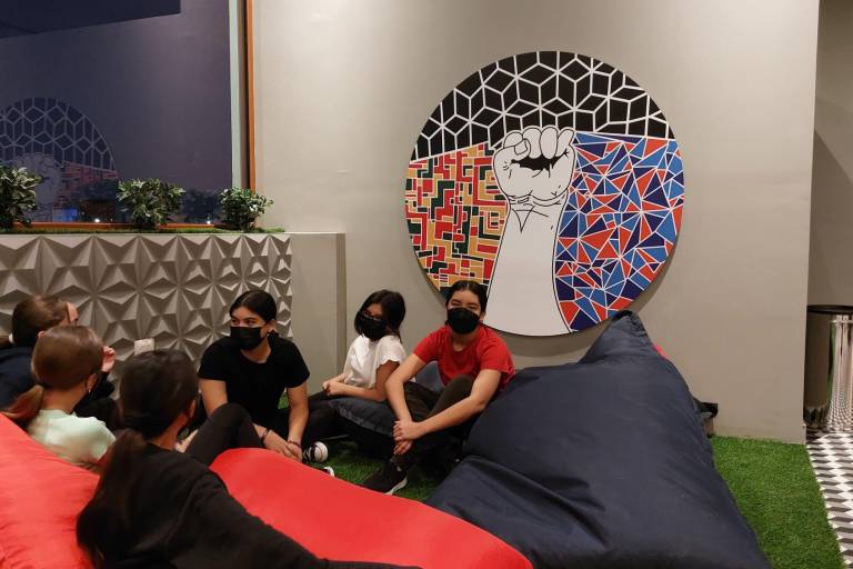 La Friendzone, como lo llamaron los alumnos, cuenta con área recreativa para socializar, un espacio verde, mesas de trabajo con conexión a Internet para investigación, escenario para espectáculos de teatro, camerinos, una pequeña sala de cine, juegos interactivos y próximamente una biblioteca para realizar las tareas o trabajos especiales.