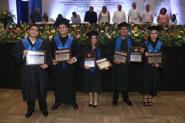 José Héctor Rojas Manjarrez, director del plantel, encabezó la ceremonia, en la que los 427 egresados de las especialidades de Contabilidad, Soporte y Mantenimiento de Computo, Administración de Recursos Humanos, Ofimática y Dietética recibieron su documentación.
