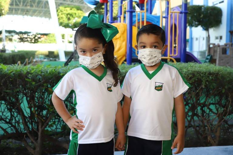 Después alrededor de 17 meses sin asistir a las aulas, este lunes decenas de pequeños de preescolar y primaria del Colegio Andes regresaron a ellas.