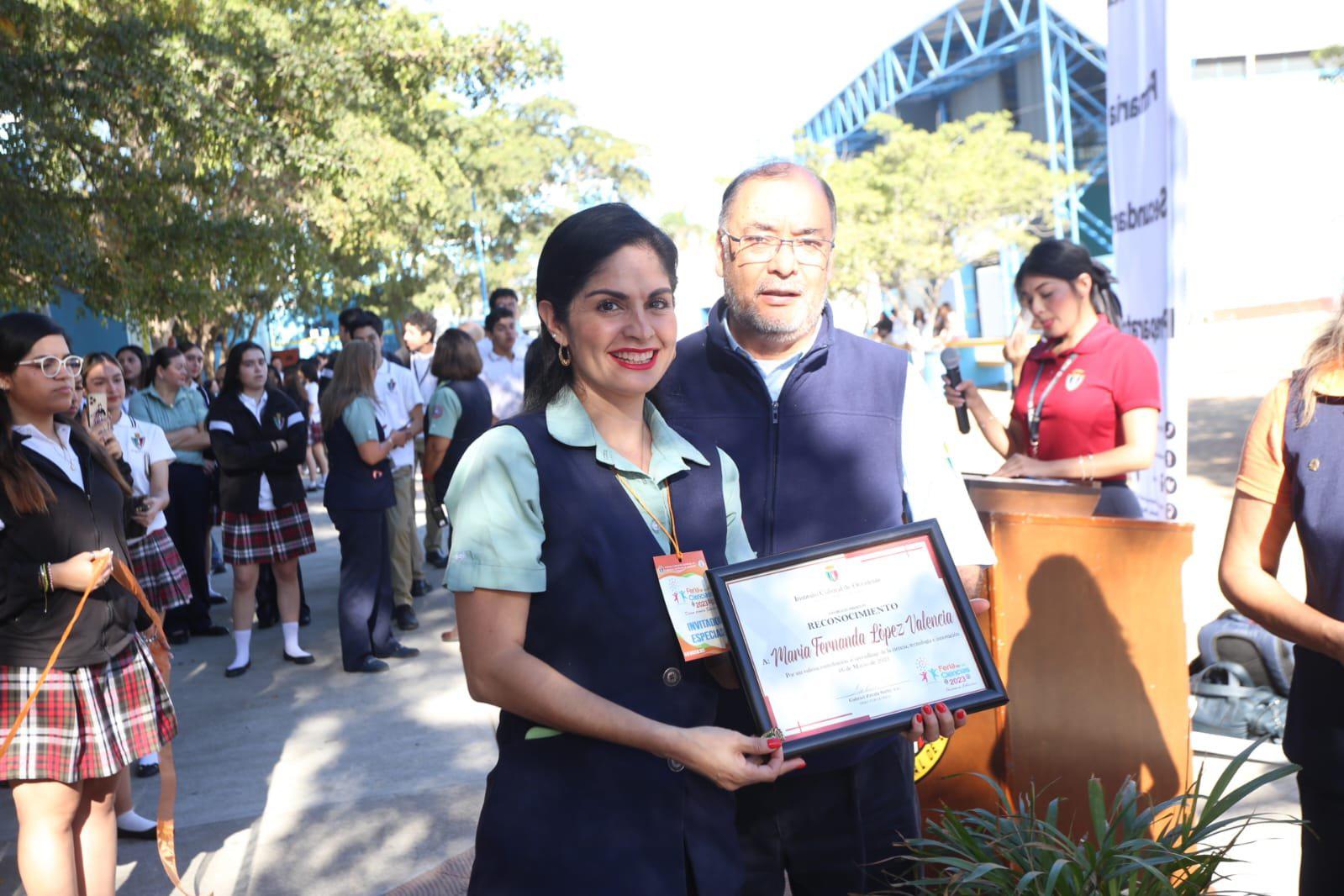 La profesora María Fernanda López con su reconocimiento. ( ) -