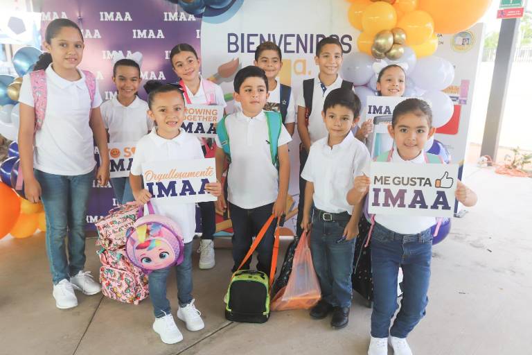 Antes de llegar a su salón, los pequeños se tomaban la fotografía del recuerdo en el área instalada especialmente para eso, en donde portaban letreros que se podía leer “Yo soy IMAA”, “Me gusta IMAA”, “Orgullosamente IMAA”, “Growing together IMAA” y “IMAA gine a best world”.